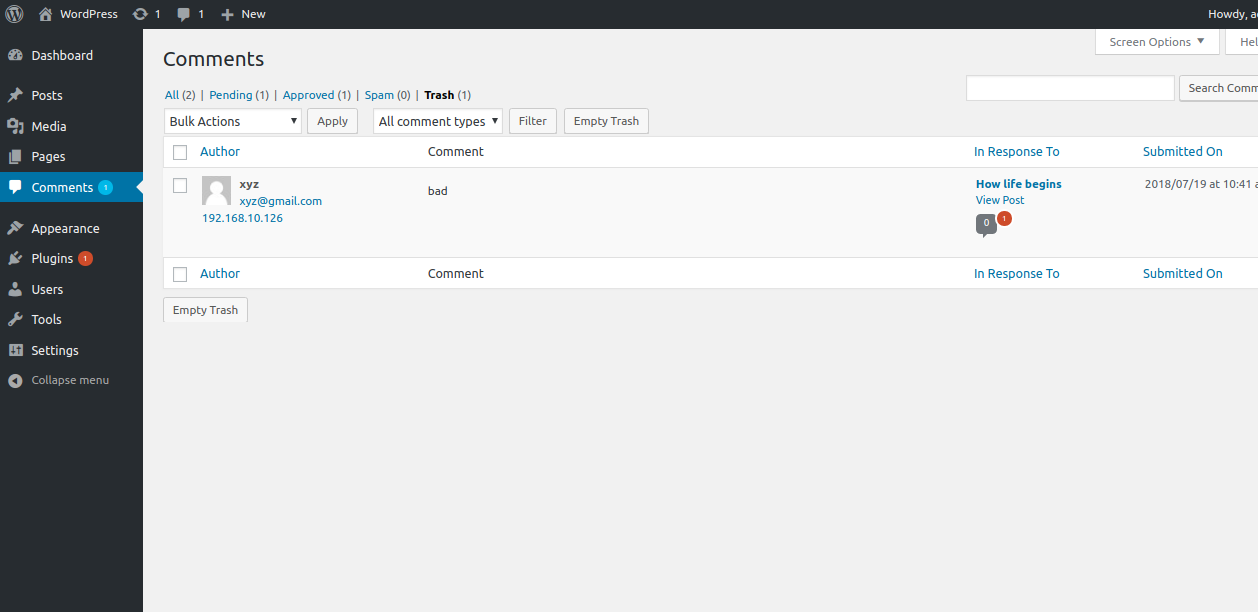 After that WordPress will not allow comments from these IP addresses and automatically move them in trash as shown in below snapshot:-