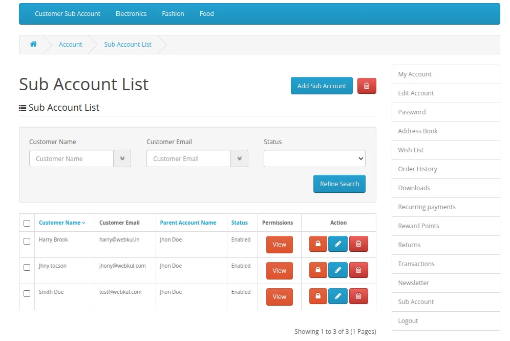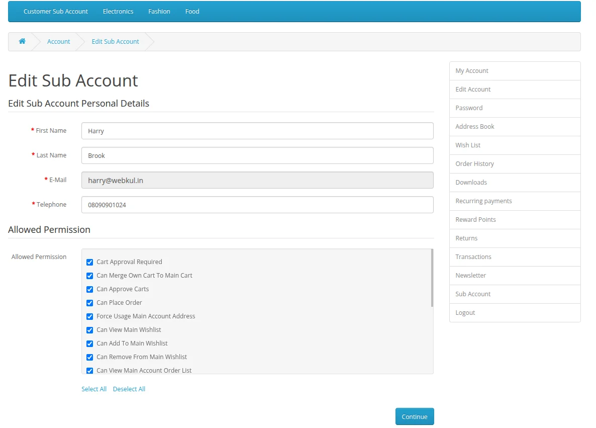 They partnered with Webkul to implement a custom sub-account solution on OpenCart.