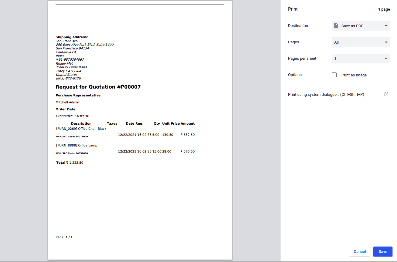 2.1. After that, you can see the ‘Purchase order’ print pop-up on your screen.
