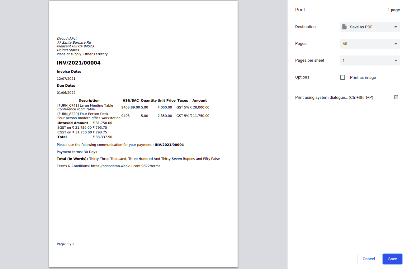 1. Odoo Print Invoice Or Report Without Download allows the admin to print the receipts of sales orders, invoices, and purchase orders without downloading their PDFs.