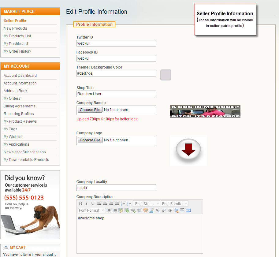 - Separate Seller Profile with Company Banner and company Logo.