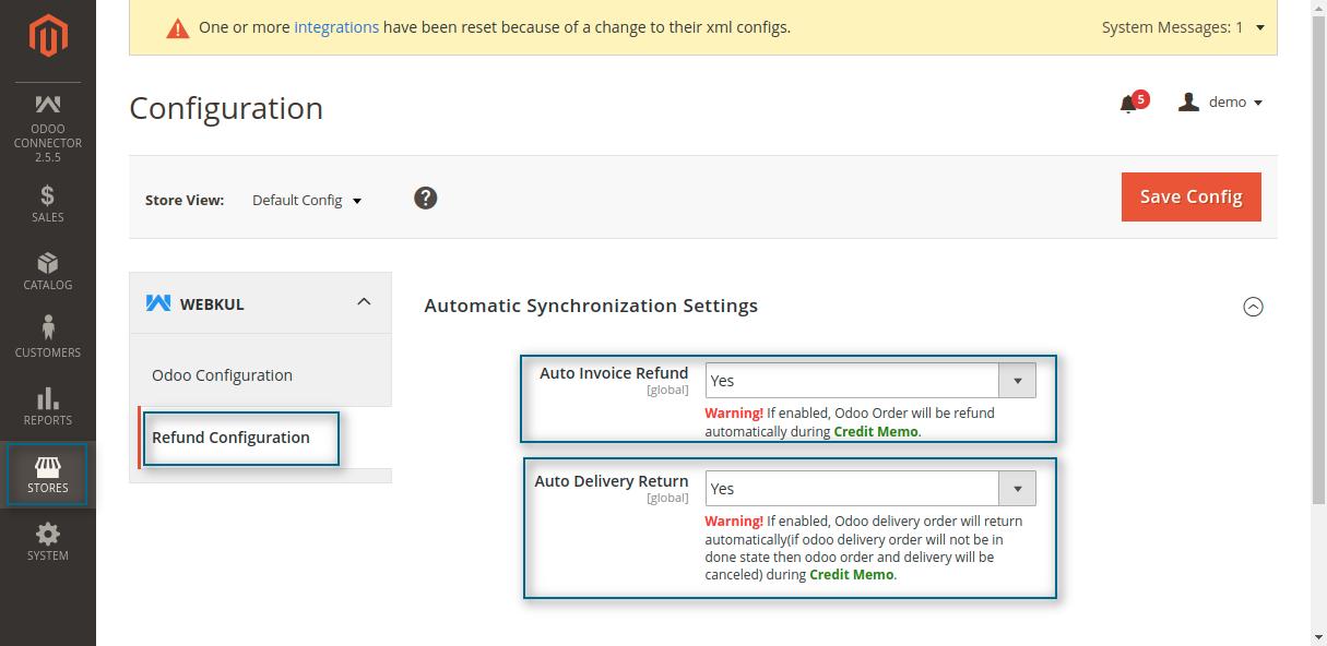 3. Here, admin can select inventory to allow the setting to automatically return the credit memo items on stock.