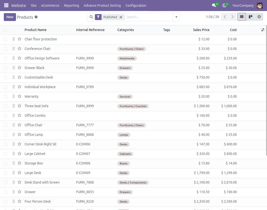 With Odoo Advance Product Sorting, you can decide which products appear first or last on the website.