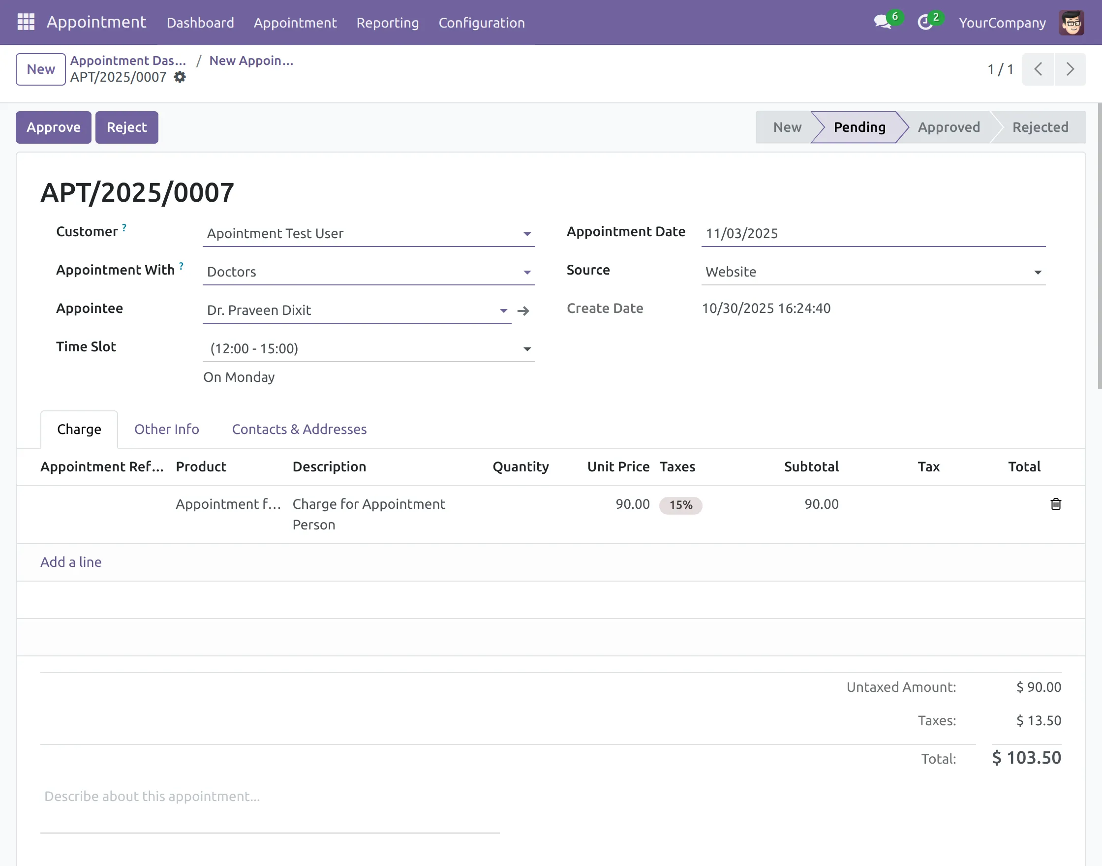 Approve simple accept the appointment request. Besides this, we will discuss the detailed approval flow in points 12-16.