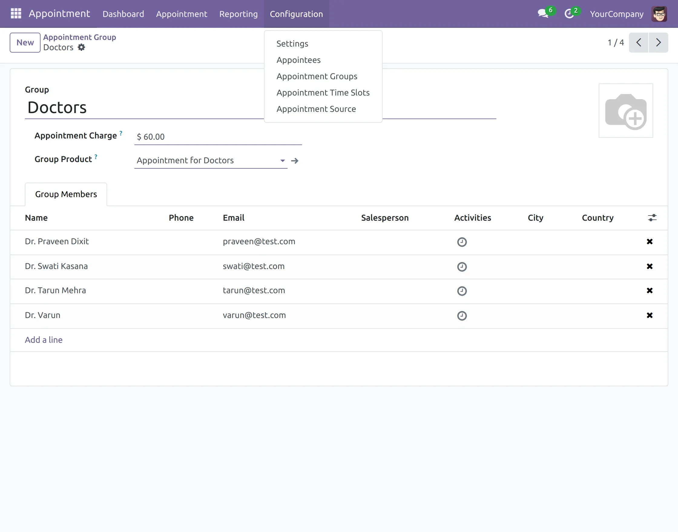 5. Next, go to ‘Configuration> Appointment Groups> Create,’ and on the page, fill in the details, and by the ‘Add a Line’ option, add group members.