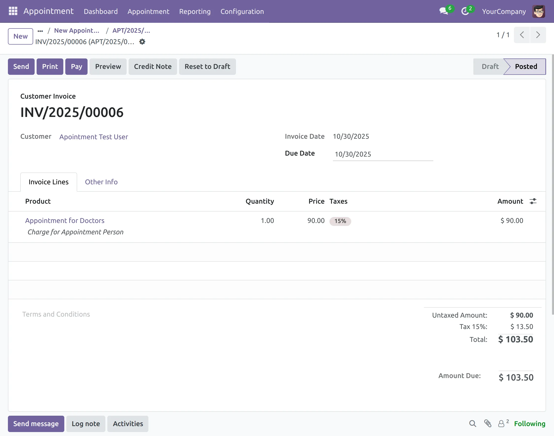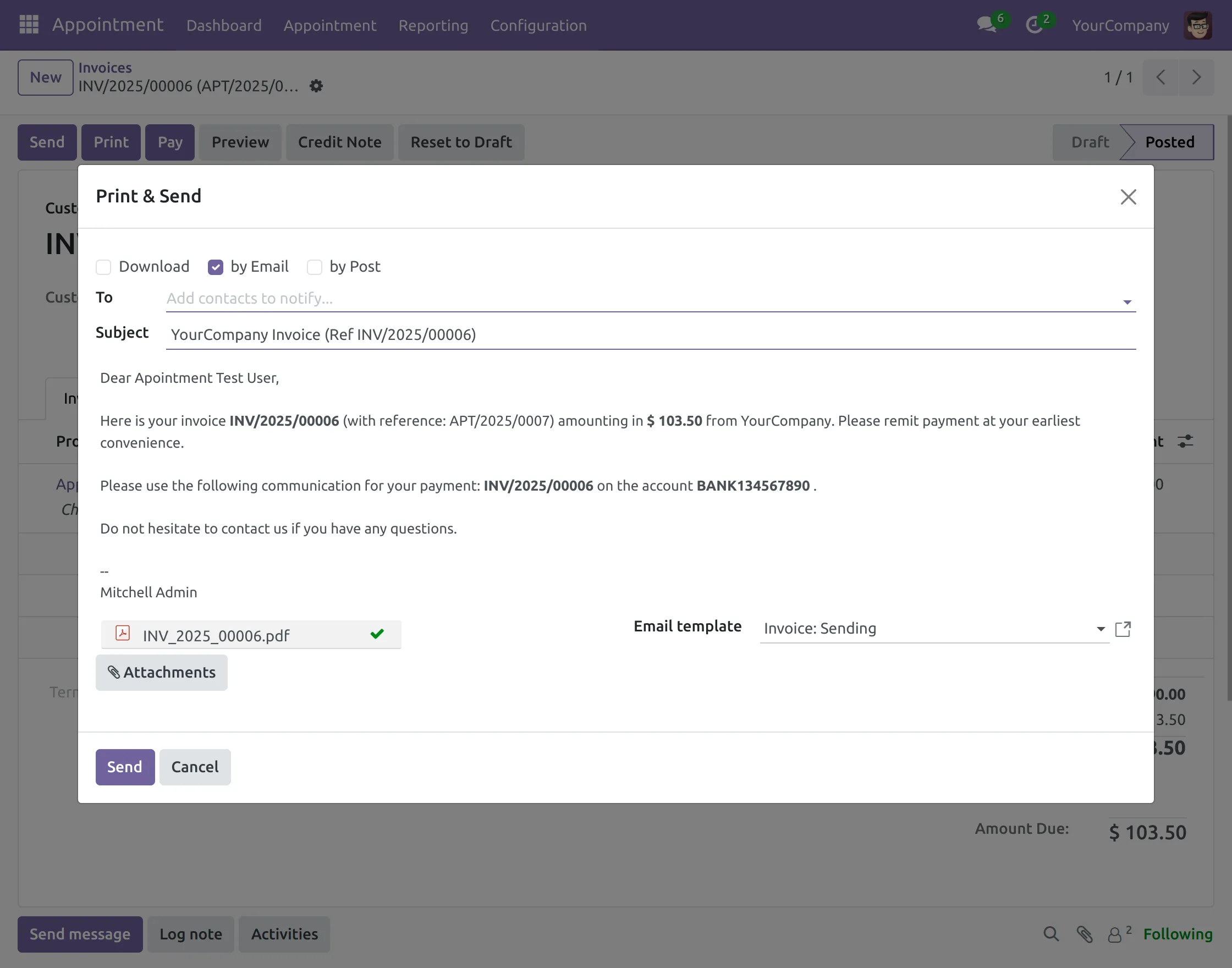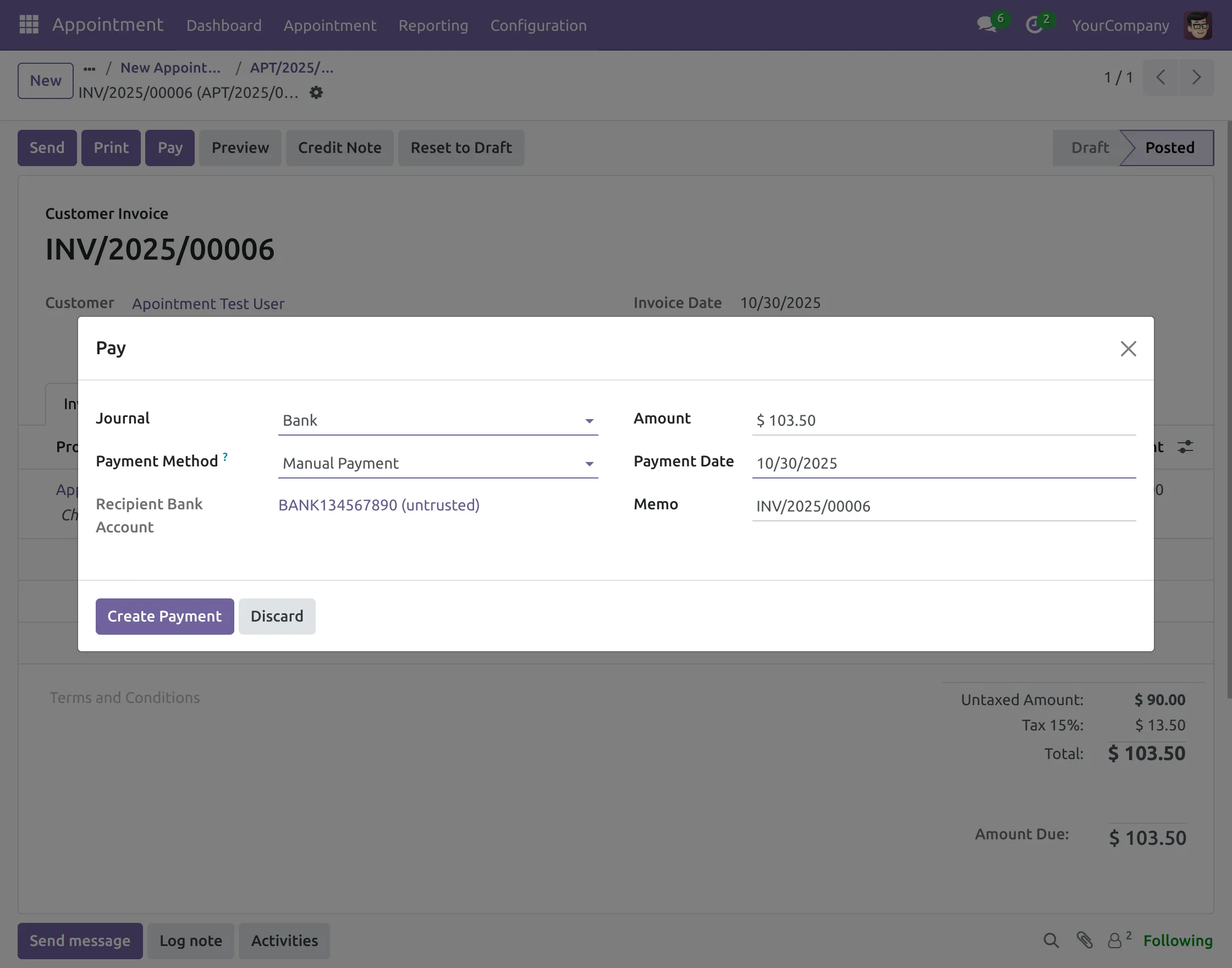 Create Invoice- It will let you create the appointment invoice.