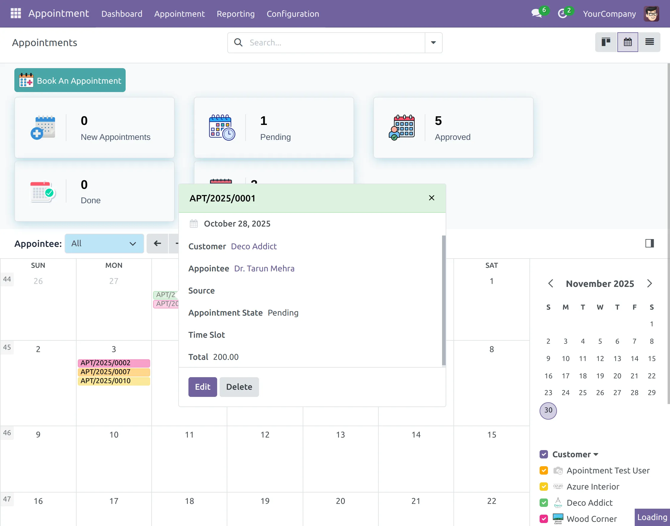 20. Click any appointment to view its details. Also, you can edit or delete it via the ‘Edit’ or ‘Delete’ buttons.