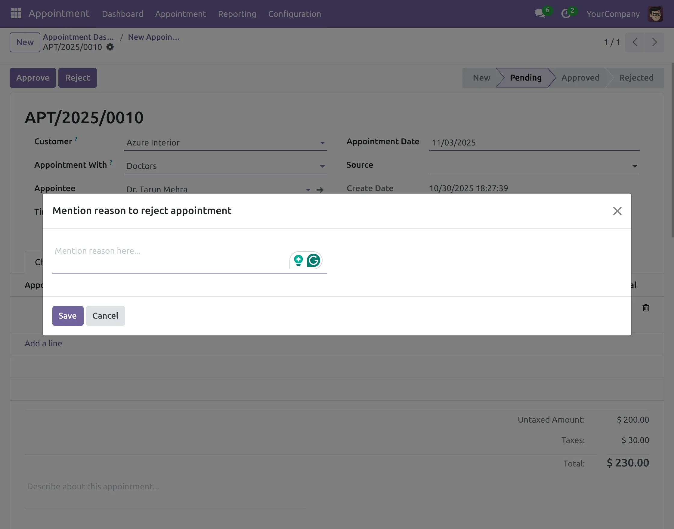 12. Now, accept the appointment by clicking the ‘Approve’ button.