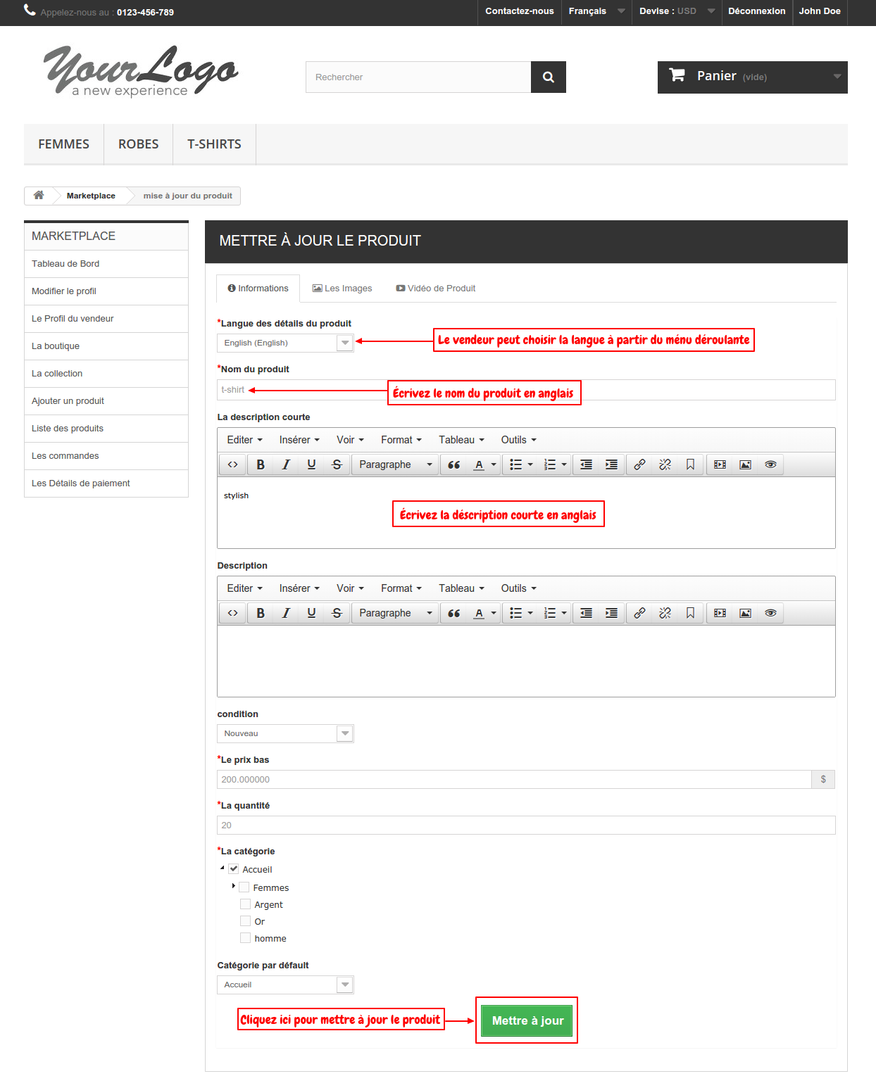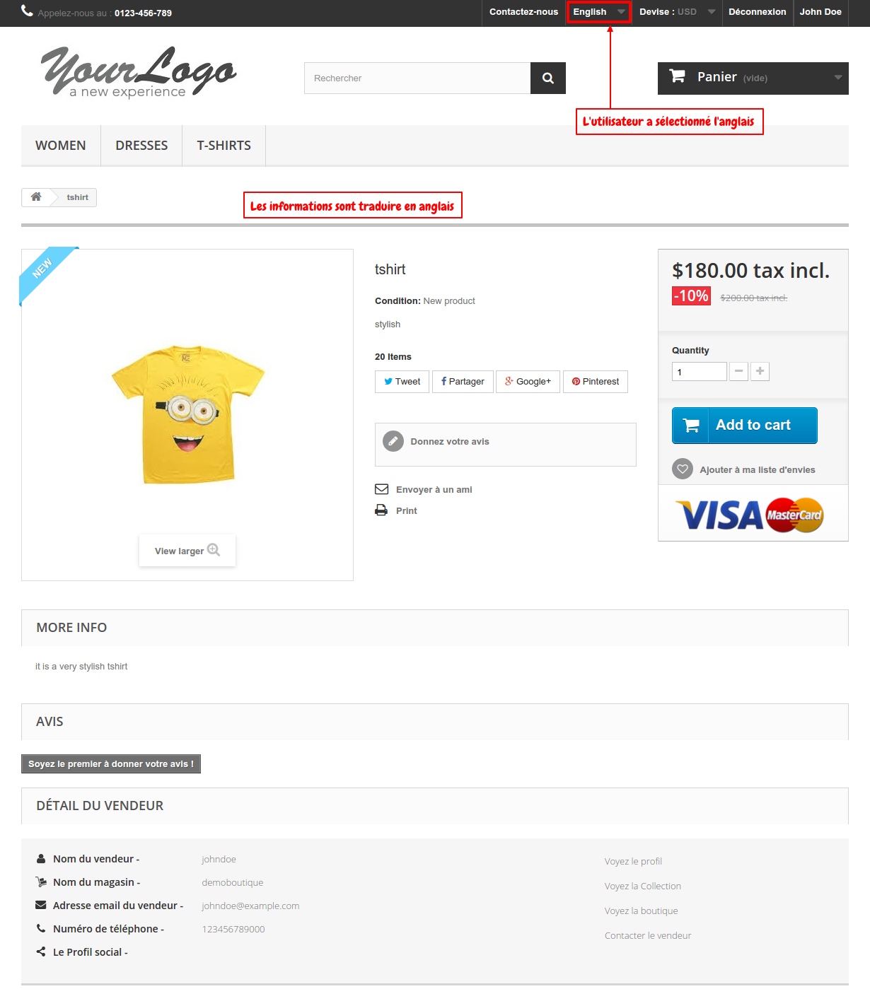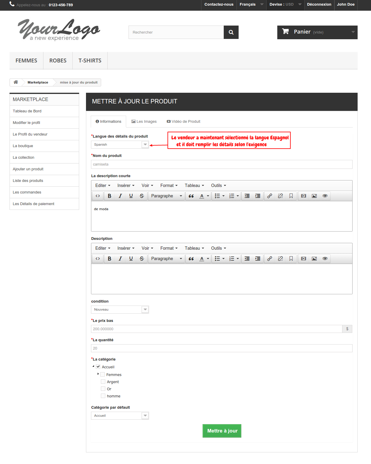 - Le vendeur peut mettre à jour le produit en plusieurs langues.
